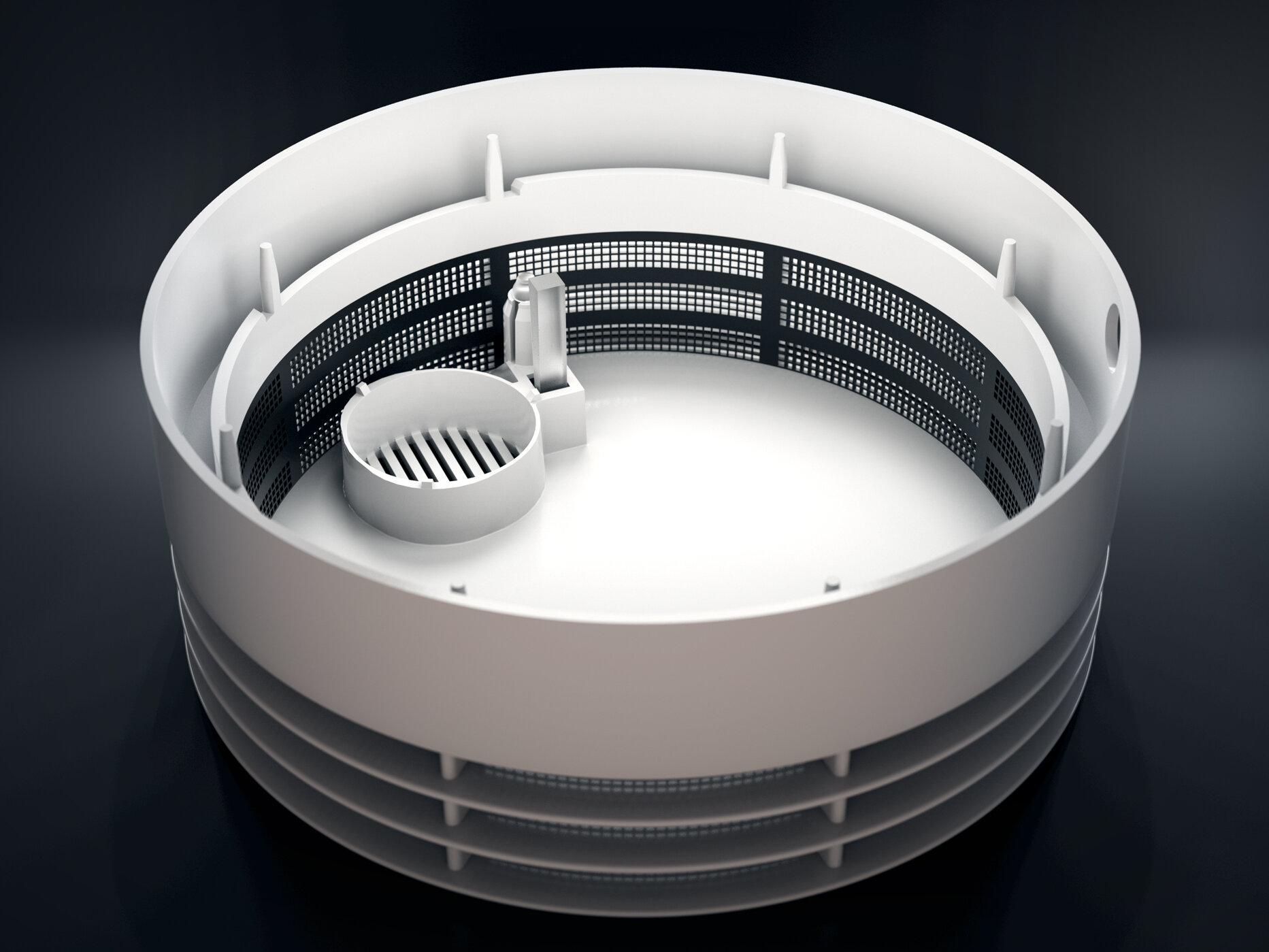 Auch hier leistet hochwertiger Kunststoff-Spritzguss seinen Beitrag. Rauchmeldergehäuse etwa schützen die sensiblen und im Ernstfall lebensrettenden Funktionen von Rauchmeldern in Gebäuden. Das Gehäuse schirmt den Sensor vor Verschmutzungen und Spritzern ab. Damit das Gehäuse den Sensor über dessen Lebensdauer hinweg schützen kann, muss es alterungsbeständig, spannungsrissunempfindlich und flexibel sein. Kunststoff-Teile gewähren diese Eigenschaften, speziell auf die Anforderungen von Rauchmeldern angepasst. Unsere vollautomatische Herstellung ermöglicht die erforderliche Qualität bei der Serienproduktion sowie kostengünstige Fertigung. Bei uns können Sie Ihre Teile und Baugruppen nach dem jeweils am besten geeigneten Verfahren fertigen lassen, auch im 2K-Verfahren oder der Hybridform.